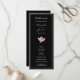 Erstellen Sie ein Programm für Ihre Hochzeitsfeier mit einer eleganten Aquarellblüte lila Magnolienblüte auf schwarzem Hintergrund und Ihre Details. PAKETE IN unserem Geschäft.