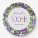Schöne lila Aquarellblüte mit grünen Blätter und Weinbergen 100. Geburtstag (oder jedes Alter) Papier Party Teller mit einem Namen und Alter angepasst.