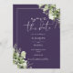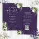 Diese elegante lila botanische Blumenladen-die-Datum-Einladung kann mit Ihren Informationen in chic Typografie mit Ihrem Hochzeitswebsite QR-Code und Details auf der Rückseite personalisiert werden. Entwickelt von Thisisnotme©