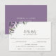 Aquarellfarben, Blumen und Blattwerk in lila und grünen Farbtönen, Hochzeitskarten mit Wahlmöglichkeit. Moderne und elegante Typografie Design Stil Vorlage. Die Rückseite der Karte weist eine lila Vollfarbe mit zwei Vorlagentextzeilen für Namen und Datum auf.