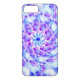 Dieses iPhone 8/7 Fall kennzeichnet einen leuchtenden abstrakten lila, lila und magentaroten Mandalamit blumenentwurf. Die Farben wirbeln um einen zentralen blauen Stern.
