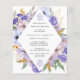 Elegante lila und blaue Blumen schaffen einen diamantförmigen Rahmen, um Ihre Details des Brunch nach der Hochzeit zu umgeben.