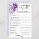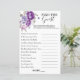 Lila Blumenthema Finden Sie die Gast-Brautparty-Spielkarte