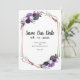 Save the Date Lila Floral Romantik für Ihre besondere Tagesankündigung. Teil der lila Hochzeitskollektion. Für eine erweiterte Personalisierung klicken Sie bitte auf den Button "Anpassen" oben. Verfügbare Elemente zuordnen