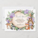 Whimsical Dankeschön-Karte mit Darstellung der rustikalen Aquarell, hübschen violetten Blumen und bezaubernden Waldtieren: Hirsche, Bär, Fuchs, Marmelade, Eule