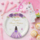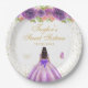 Dieser elegante und glamouröse 16 . Geburtstag-Teller besticht durch eine hübsche Prinzessin mit dunklem Haar und dunkler Haut in einem lila Ballkleid. Der Text kombiniert handgeschriebene Skripte mit modernen serifenlosen Schriftart für ein elegantes und raffiniertes Aussehen. Die Blumenarrangements, Schmetterlinge und Goldkonfetti bilden die perfekte Mischung aus rustikal und schick. Grafiken von www.etsy.com/uk/shop/SunflowerDayLove