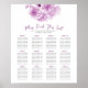 Lila Blüten Aquarelltafel Plan Hochzeitssignatur Poster. Hübsche botanische Aquarellquelle Hochzeitssignatur personalisieren mit Ihren eigenen Empfang Gastnamen, Sitzplan Design ist für 12 Tische. Schönes Blumendesign, ideal für eine lila oder Frühlingsblüte thematische Hochzeit. © Original handgemalte Aquarellkunst und Design von Sarah Trett für www.mylittleedenweddings.com