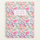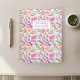 Individuell gestaltetes Planerheft mit lila Blumenmuster in Aquarellfarbe mit personalisiertem Namen.