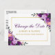 Lila Blütengold in Aquarellfarben ändert das Datum Postkarte