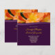 Eine lila und orangefarbene Hochzeitseinladung mit Empfang-Details, die optional auf der Rückseite gedruckt werden. Wenn Sie möchten, können Sie die Karten des Empfangs einfach überspringen. Sie sind herzlich eingeladen, meine Website für weitere Einladungen und Designs zu besuchen —> floraluniverses.com