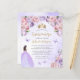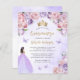 Diese schöne Quinceañera Einladung zeigt eine Grenze von lila lila und rot rosa Rosen auf einem lila Aquarell. Eine goldene Tiara, ein brünettes Mädchen in einem lila Prinzessenkleid und kleine lila Schmetterlinge schmücken den Text. Das Wort "Quinceañera" und der Name des Ehrengast erscheinen in elegantem goldfarbenem Schriftzeichen, der Rest in grauem Sans Serif Schriftart. Fügen Sie auf der Rückseite zusätzlich einen QR-Code hinzu, um Ihren Gästen zu helfen, Ihre quinceañera Website und UAWG online zu besuchen.