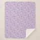 Romantische und coquette Decke mit handgezeichneter Illustration von lila Bögen und Herzen.
