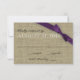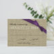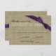 Das bedruckte Aussehen des Einbruchs mit einem bedruckten, dunklen lila Bogen. Antwortkarte für unsere "Burlap and Bogen" Hochzeitseinladungen. Ändern Sie den Text nach Bedarf, und verschieben Sie den Bogen nach Belieben oder löschen Sie ihn, wenn er nicht gewünscht wird.
