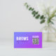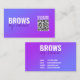 Diese bearbeitbare Visitenkartenvorlage ist ideal für alle Brows Künstler, die will, ihren Stil und ihre Professionalität zu präsentieren. Es hat einen lila Gradientenhintergrund, der einen schönen und auffälligen Look schafft, einen kalligrafischen Text, der jede Nische oder Branche Anzug, und einen QR-Code, der Ihre Kontakte mit Ihren sozialen Medien oder Ihrem Blog verbindet.