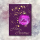 Dies ist eine elegante Grußkarte für die Urlaubssaison, mit dem Vorbild eines wunderschönen violetten und silberfarbenen Glühbirnen-Set gegen einen goldenen Stern gefüllt lila Nachthimmel. Stilisierter Goldtext unten sagt Frohe Weihnachten. Passen Sie die innere Nachricht einfach an Ihre Wünsche an, oder verließ, wie es ist. Hell und farbenfroh!
