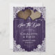 Genießen Sie Ihre romantische lila Hochzeitsfeier mit dieser herrlichen Hochzeitsfeier und Hochzeitsfeier. Sie sparen die Datumskarten mit zwei Burlherzen auf einem lila Holzboden mit Saitenlichter und weißer Blumenspitze. Matching-Elemente verfügbar.