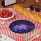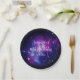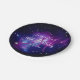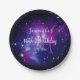 Schwarze, blaue, lila und weiße Galaxie-Cluster Himmelsstrahlung Foto Hintergrund mit weißen Sternen und Galaxien. Erstellen Sie Ihre eigenen Teller zum 16. Geburtstag für ihre himmlische Veranstaltung. Sie können das Monogramm behalten oder löschen. Ein lila Monogramm mit weißem, anpassbarem, modernem Skript.