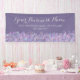 Willkommene Fahne für ein Geschäft/eine Firma in Lila mit Confetti in violettem, in rosa und Blau.