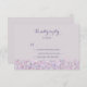 RSVP Karte für eine Hochzeit. Vor blassem Hintergrund, lila Text und eine Band aus rosa, blauen und violetten Konfetti.