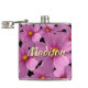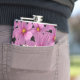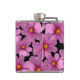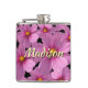 Lila Cosmos-Blume-Design auf schwarzem Hintergrund Flachmann