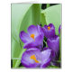 Blume Crocus, die lila Blütenblätter und grüne Blätter enthüllt