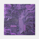 Eine lila Platine in Cyberfarbe. Bild aus der echten Computerelektronik im öffentlichen Bereich. Dann bearbeitete ich es mit Filtern in Fotoshop. Der Plastikschlackfilter fügte Details hinzu und ich änderte die Farbe.