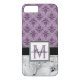 Lila Damast und Marmormonongramm Case-Mate iPhone Hülle