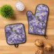 Lila Delphinium Blüten Ofenhandschuh & Topflappen-Set