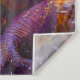 Dieser Wandteppich hat einen lila Dinosaurier, der darauf abgebildet ist.