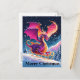 Dieses künstlerische Kunstwerk vereint einen zauberhaften Winterabend mit einem atemberaubenden rosa und lila Drachen, der auf dem Schlitten des Weihnachtsmannes durch den verschneiten Himmel reitet. Set vor dem Hintergrund funkelnder Sterne.
