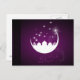 Eid Mubarak grüßt Illustration mit Silhouetten des Mondes, Sternen und einer Moschee. Eid Mubarak Schrift in arabischer Schrift und einer Ziergrenze.