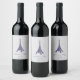 Lila Eiffelturm Damask Hochzeitswein Weinetikett