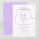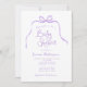 Lila Einladung der Bow Baby Dusche. Ein trendiger, niedlicher handgezeichnet Stilbogen und Band gepaart mit skurrilen und lustigen Schriftart. Einfach aber spielerisch. Lila und weiß dargestellt, aber Sie können alle neuen Farben für Hintergrund, Design und Text auswählen. Personalisieren Sie die fertige Vorlage mit allen notwendigen Veranstaltungsinformationen, um Ihre Babydusche-Einladungen mühelos anzupassen. © Kimbellished, LLC