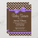 Eine trendy lila und braune Babyduscheneinladung. Aufmachung der weißen Polkapunkte und der lila Bogengraphik. Vervollkommnen Sie für eine Babyparty des kleinen Mädchens. Personifizieren Sie leicht! Entwürfe sind Ebene Druckillustrationen/Grafiken - NICHT TATSÄCHLICHES BAND.