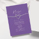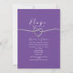 Laden Sie Ihre Lieben ein, um Ihre private Zeremonie mit dieser lila Hochzeitsempfehlung zu feiern. Mit einem romantischen silbernen Seilherz, minimalistischem violettem Hintergrund und ausgeklügelter Kalligraphie-Schrift ist es die perfekte Ankündigung für Ausflüge, intime Hochzeiten oder kleine Ansammlungen.