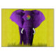 Lila Elefant mit OM-Symbol steht auf Gras mit einem gelben Hintergrund. Unterschätzen Sie nie einen Elefanten. Einige glauben, dass sie ein Symbol des Glücks sind