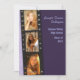 Die stilvolle Fotokarte für den Absolventen in lila beinhaltet Filmstreifen mit Spot für 3 Fotos. Seitliche Grenze hat einen subtilen lila Druck, der durchblättert wird. Laden Sie einfach Ihre eigenen Bilder hoch und passen Sie den Text für Ihren speziellen Absolventen an. Kann als Ankündigung oder Einladung angepasst werden.