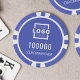 Erstellen Sie Ihre eigenen lila Poker-Chips mit Ihrem Firmenlogo und Ihrem Firmennamen.