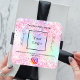 Rosa, lila, minzgrüner holografischer Hintergrund. Dekoriert mit rosa Konfetti. Personalisieren Sie Ihren Firmennamen, Ihr Firmenlogo und Ihren Instagram #hashtag für Angebote und anstehende Veranstaltungen und fügen Sie diese hinzu. Mit dem Text x2: Folgen Sie uns!