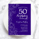 Lila florale 50. Geburtstagsparty Einladung. Minimalistisches modernes Design mit botanischen Kontur Zeichnungen Akzente und Typografie Drehbuch Schriftart. Einfache, trendige Einladungskarte für eine stilvolle Damenfeier. Kann für jedes Alter angepasst werden. Gedruckte Zazzle Einladungen oder Sofortdownload digitalen druckbaren Vorlage.