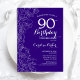 Lila florale 90. Geburtstagsparty Einladung. Minimalistisches modernes Design mit botanischen Kontur Zeichnungen Akzente und Typografie Drehbuch Schriftart. Einfache, trendige Einladungskarte für eine stilvolle Damenfeier. Kann für jedes Alter angepasst werden. Gedruckte Zazzle Einladungen oder Sofortdownload digitalen druckbaren Vorlage.