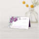 Elegante lila florale Hochzeitstisch-Platzkarte mit handgeschriebenen Skripttypografie und Platz für Sie, um die Tischnummer und Ihren Gastnamen hinzuzufügen. Das Design hat lila und goldene Konfetti mit Aquarell Rose Peony Blume in den Schattierungen lila und Magenta und, grau grüne Blätter und Blätter. Bitte stöbern Sie in meiner Sammlung von Plush Lila Floral nach passenden Artikeln.