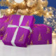 Unser Lila Foil Stylized Christmas Tree Wrapping Paper hat ein stilisiertes Weihnachtsbaummotiv auf einem glänzenden, lila folienähnlichen Hintergrund gedruckt.