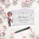 Eine Hochzeit Dankeschön Karte. Ein Imitat silber metallisch aussehende Hintergrundfarbe. Mit lila Imitaten Glitzer Glitzern. Auf der Vorderseite, ein großes handgeschriebenes Skript und der Text: Danke, Ihre Monogramm Initialen, Namen und ein Datum. Zurück: Personalisieren und fügen Sie Ihre Hochzeit Foto, danke Ihnen Notiz und Namen.
