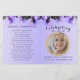 Passen Sie dieses moderne, elegante Begräbnisprogramm mit Ihrem eigenen Foto und Text an, um Ihren Geliebten eine besondere Hommage zu vermitteln. Ein "In Loving Memory" Programm mit einer Lila Blumenrosy mit Goldakzent-Gedenkprogramm. Auf der Titelseite befindet sich ein Foto Ihres Lieben, sein Name, Daten, der Gedenkort und das Datum der Veranstaltung. Im Inneren ist ein Obituar und Ordnung des Dienstes, und auf der Rückseite ist ein Dankeschön Hinweis und der Veranstaltungsort des Unsere Geschäft bietet auch andere Designs, die botanische Vegetation mit Rose und Blätter Design und Glitzer/golden Akzenten und Eukalyptusblättern, um alle Anforderungen zu erfüllen.