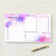 Personalisiertes, tägliches Planungs-klebriges Notizblock mit lila Aquarellfarben-Flecken, ein Stundenplan von 7:00 bis 19:00 Uhr, eine Checkbox zur Liste und Platz für Notizen, Speiseplanung oder etwas Anderes, das Sie brauchen. Ändern Sie einfach den Text in Anzug, um den Zweck Ihrer täglichen Planungsnotizen. Anpassen, indem Sie Ihren Namen in einem charmanten Skript in dunkel lila hinzufügen. Tagsüber organisieren wir ein Notizblock mit lila, violetten und fuchsienfarbenen Aquarellfarben, die mit Ihrem Namen und Ihren Kategorien personalisiert sind.