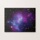 Ein cooles himmlisches Rätsel für ihre Geburtstagsfeier zum Stern. Ein hübsches Foto in Schwarz, Blau, lila und Weiß. Galaxy Cluster MACS J0717 dank NASA und Hubble Programm.
