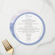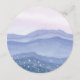 Hochzeitskarte mit Morgenberglandschaft. Weiche blaue Naturlandschaft. Silhouetten von Bergen und Leuchten Blume. Aquarellmalerei Hintergrund Hochzeitsmenü Karte. Lila Bergsammlung.