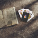 Lila-gelbe Monogram, erste D schwarz Spielkarten