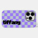 Chic lila karierte Handy-Gehäuse, ein perfektes Geschenk für Ihre Freundin. Mit diesem modischen und trendigen Accessoire verleiht sie ihrem alltäglichen Look eine stilvolle Touch
